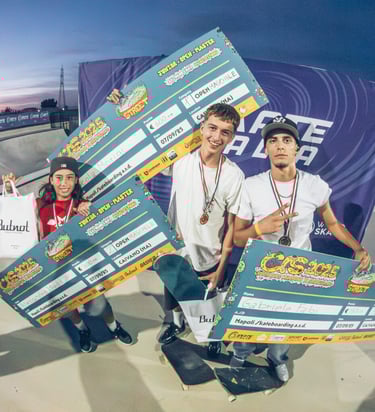 Finalmente anche in Campania si è svolto il Campionato Regionale di Skateboard! Il contest, il primo nel suo genere, lo abbiamo organizzato noi della Napoli.Sk8.ASD insieme al Comitato Regionale Campano della FISR (Federazione Italiana Sport Rotellistici), tre le categorie in gara: junior, open e master. Il palcoscenico è stato il nuovissimo Skatepark del Centro “Pino Daniele” di Caivano, in quello che fino a pochi anni fa era un luogo di degrado e criminalità, adesso è il fiore all’occhiello di una comunità che ha tanta voglia di rialzarsi! e lo sport, come già accaduto in tanti luoghi simili in Italia, è uno strumento eccezionale. L’evento ha attirato atleti da tutta Italia, hanno mostrato il meglio delle proprie capacità per conquistare il titolo, grande partecipazione e tanti momenti spettacolari con grande afflusso di pubblico, atmosfera di puro fair play e sportività. La gara svoltasi sotto un sole cocente, ha visto oltre 40 skaters darsi battaglia fino all'ultimo trick! Essendo un evento open (aperto ai fuori regione), ci sono state due classifiche, i vincitori assoluti sono stati: