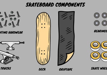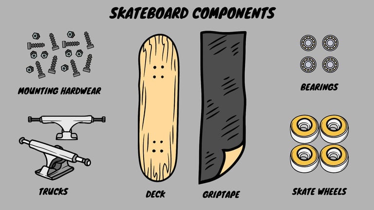 Trucks: I carrelli metallici che collegano le ruote al deck.