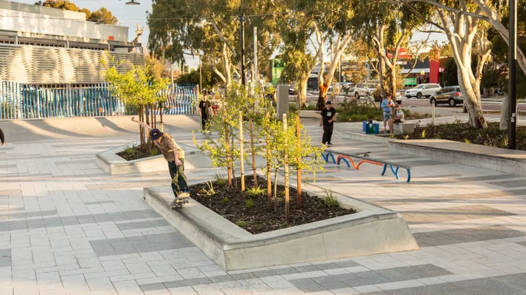 Skatepark: Area attrezzata con rampe, rail, quarter, ecc.